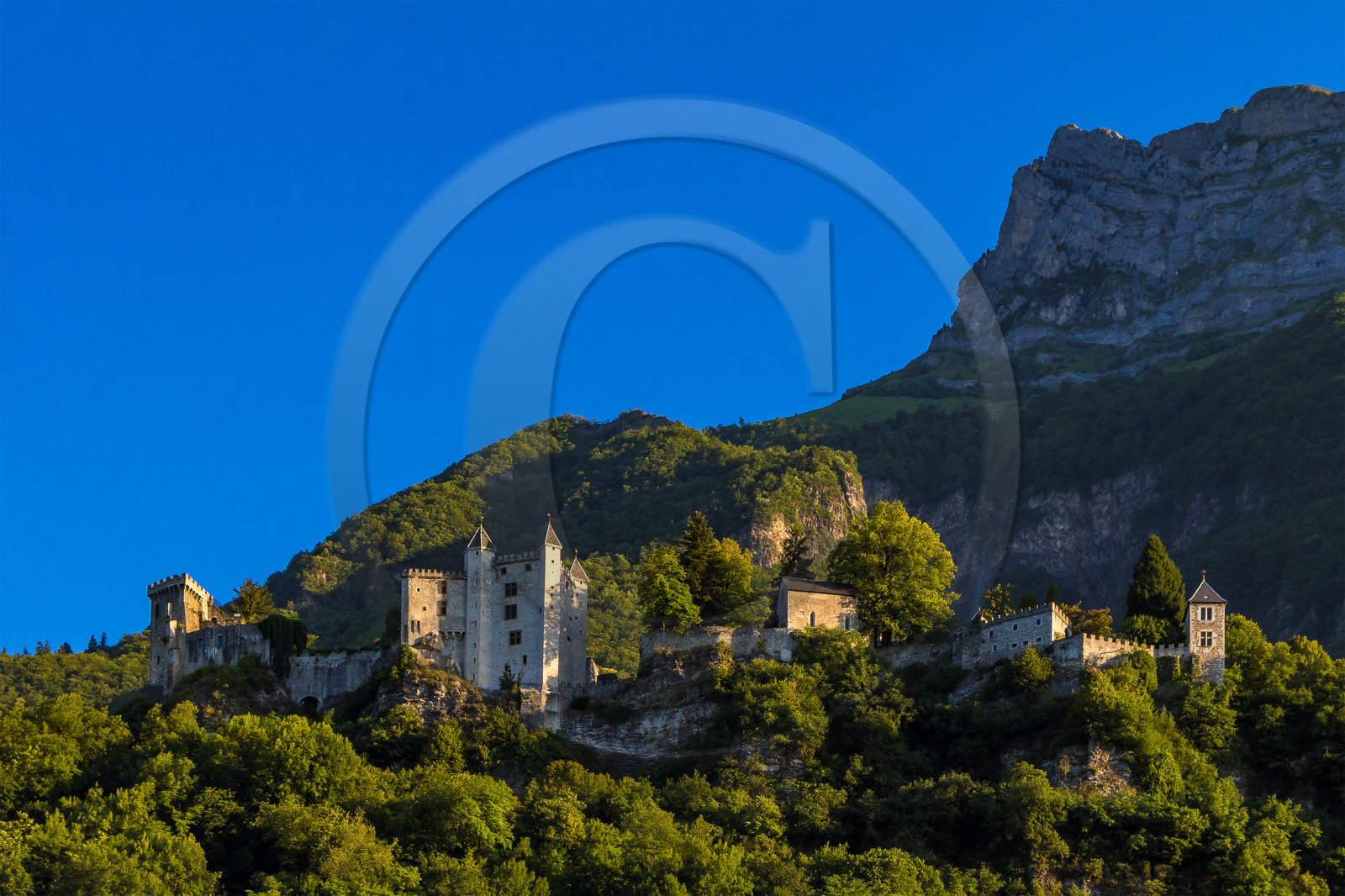 Description | Savoie (73), vallée de l’Isère, Combe de Savoie, Saint-Pierre-d'Albigny, Château de Miolans, forteresse classée monument historique |