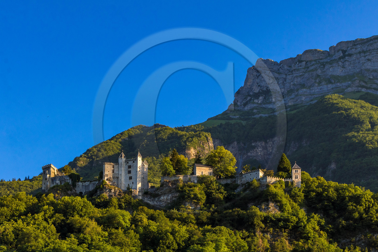 Description | Savoie (73), vallée de l’Isère, Combe de Savoie, Saint-Pierre-d'Albigny, Château de Miolans, forteresse classée monument historique |