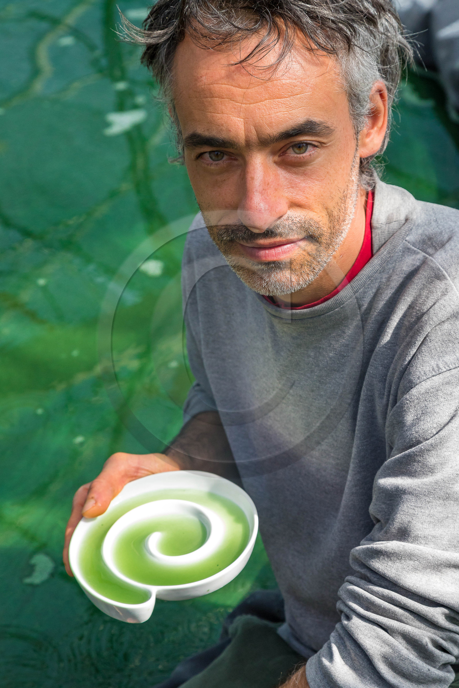Description | Hautes-Alpes (05), Pays de Serre-Ponçon, Chorges, Les Néviers, Spiruline de l'Essen'Ciel, Yannick Lopez producteur de spiruline, une micro-algue alimentaire |