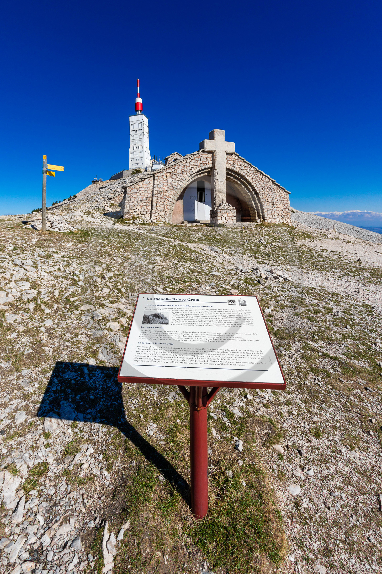 Description | Vaucluse (84) , Mont Ventoux, surnommé le Géant de Provence ou le Mont Chauve, il est classé réserve de biosphère par l'UNESCO et site Natura 2000, chapelle Sainte Croix |