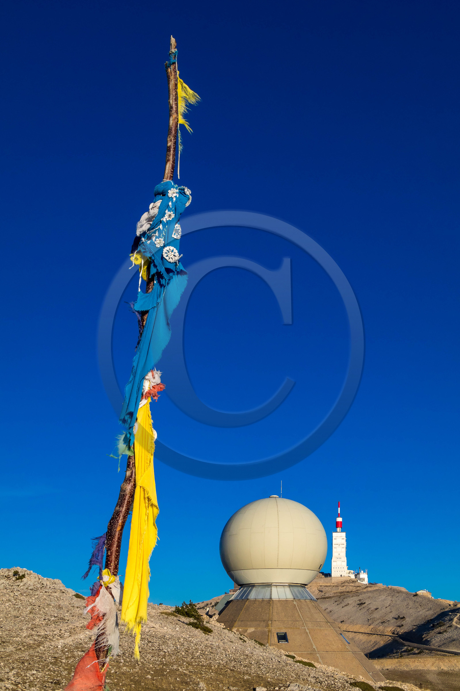 Description | Vaucluse (84) , Mont Ventoux, surnommé le Géant de Provence ou le Mont Chauve, il est classé réserve de biosphère par l'UNESCO et site Natura 2000, tour de l'Observatoire et radôme |