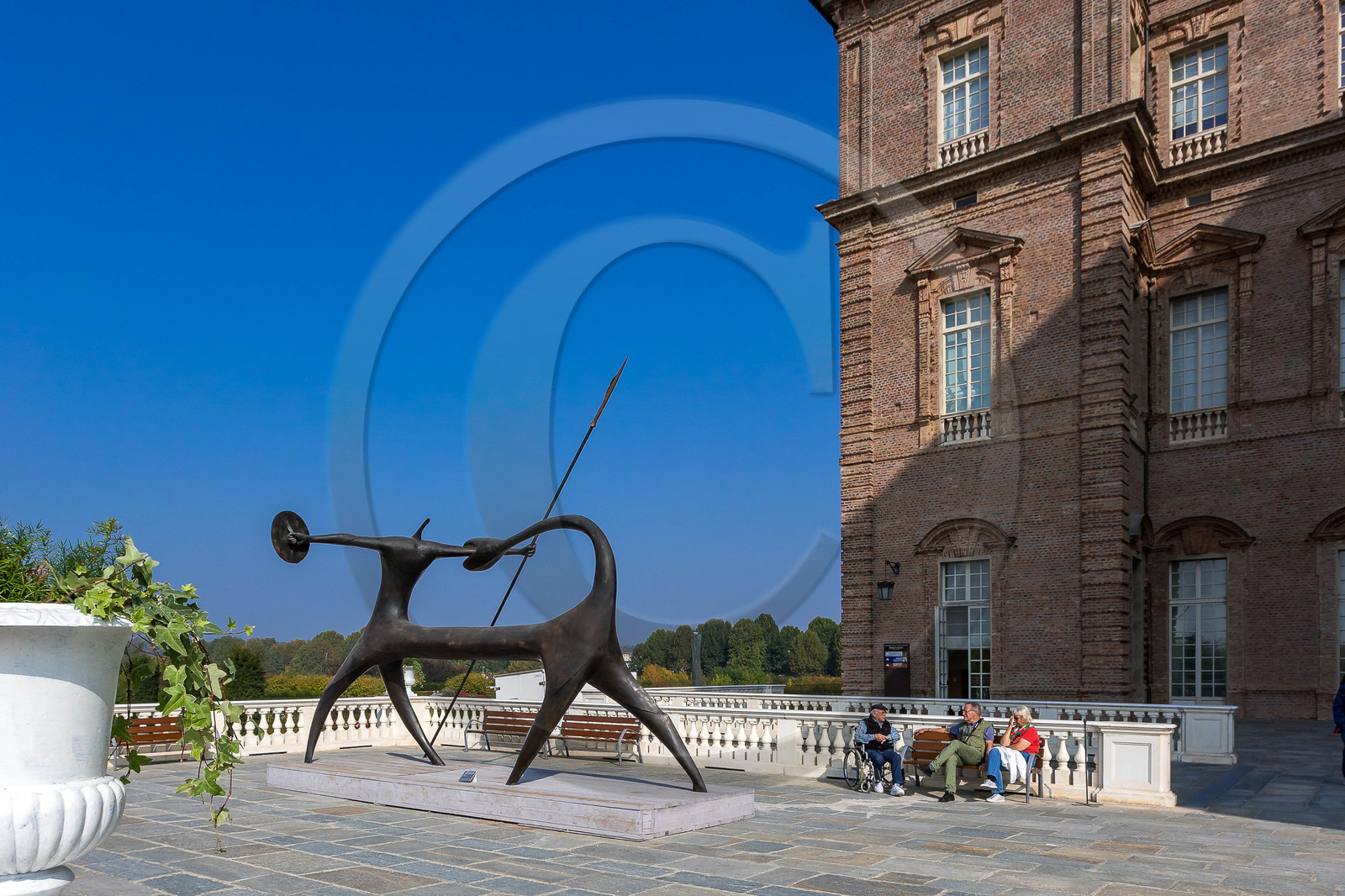 | Description | Italie, Piémont, Turin, La Venaria Reale est classée au Patrimoine mondial de l'Humanité par l'Unesco, Sculptures modernes, Giuseppe Maraniello, Le chat endormi rond, 2009, bronze |