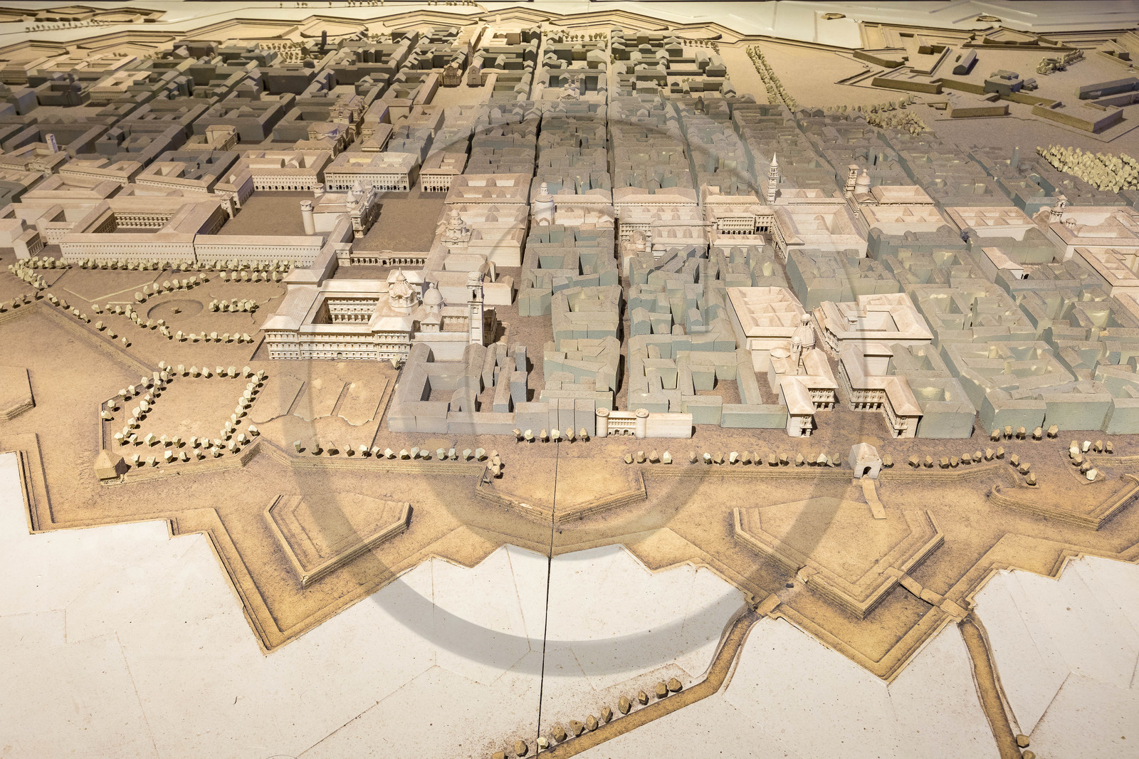 | Description | Italie, Piémont, Turin, La Venaria Reale est classée au Patrimoine mondial de l'Humanité par l'Unesco, Palais royal de Venaria, Plan relief de la ville royale et de la citadelle de Turin avec ses fortifications |