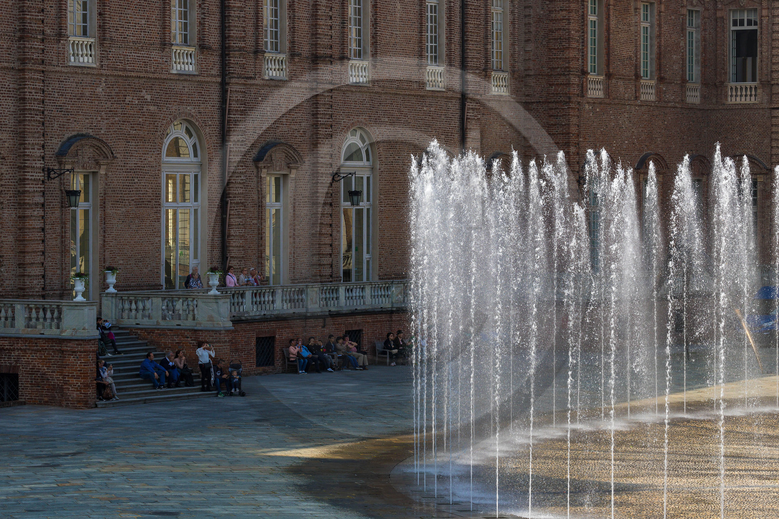 | Description | Italie, Piémont, Turin, La Venaria Reale est classée au Patrimoine mondial de l'Humanité par l'Unesco, les jeux d'eau musicaux, 100 jets d'eau dans la cour d’honneur, la Fontaine du Cerf et le Théâtre d’eau |