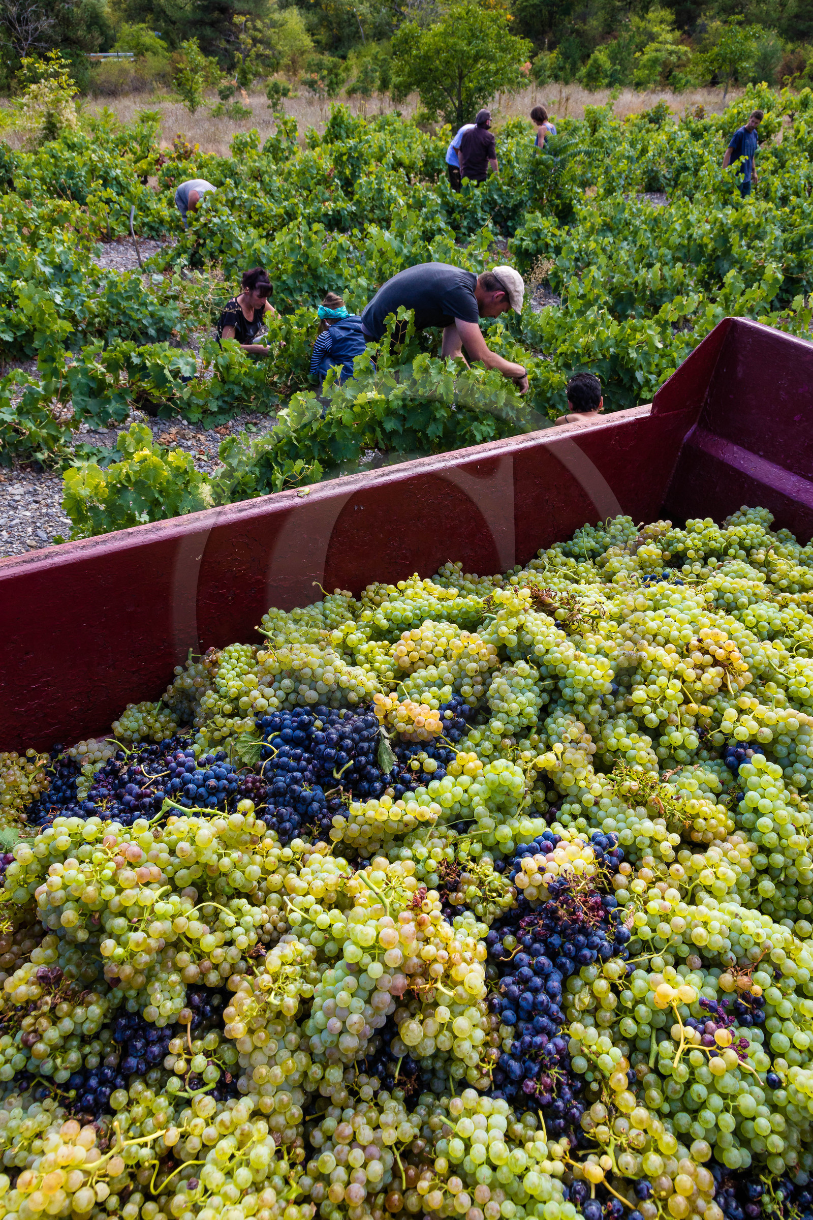 Description | Hautes-Alpes (05), vallée de la Durance, Serre-Ponçon Val d'Avance, Théüs, Vignoble de Théüs, Domaine Allemand, les vendanges |