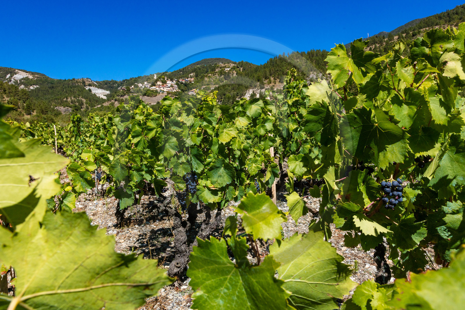 Description | Hautes-Alpes (05), Durance valley, Serre-Ponçon Val d'Avance, Théüs, .17/5000.Vineyard of Théüs |