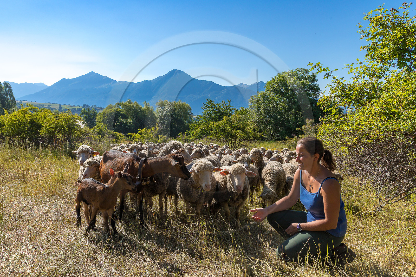 | Description | Hautes-Alpes (05), Parc national des Ecrins, Vallée du Champsaur, Saint-Michel de Chaillol, Gaec du Caîre, ferme de Chaillolet, élevage, production viande ovine Label Rouge, Marque Esprit Parc national, Florence Martin |