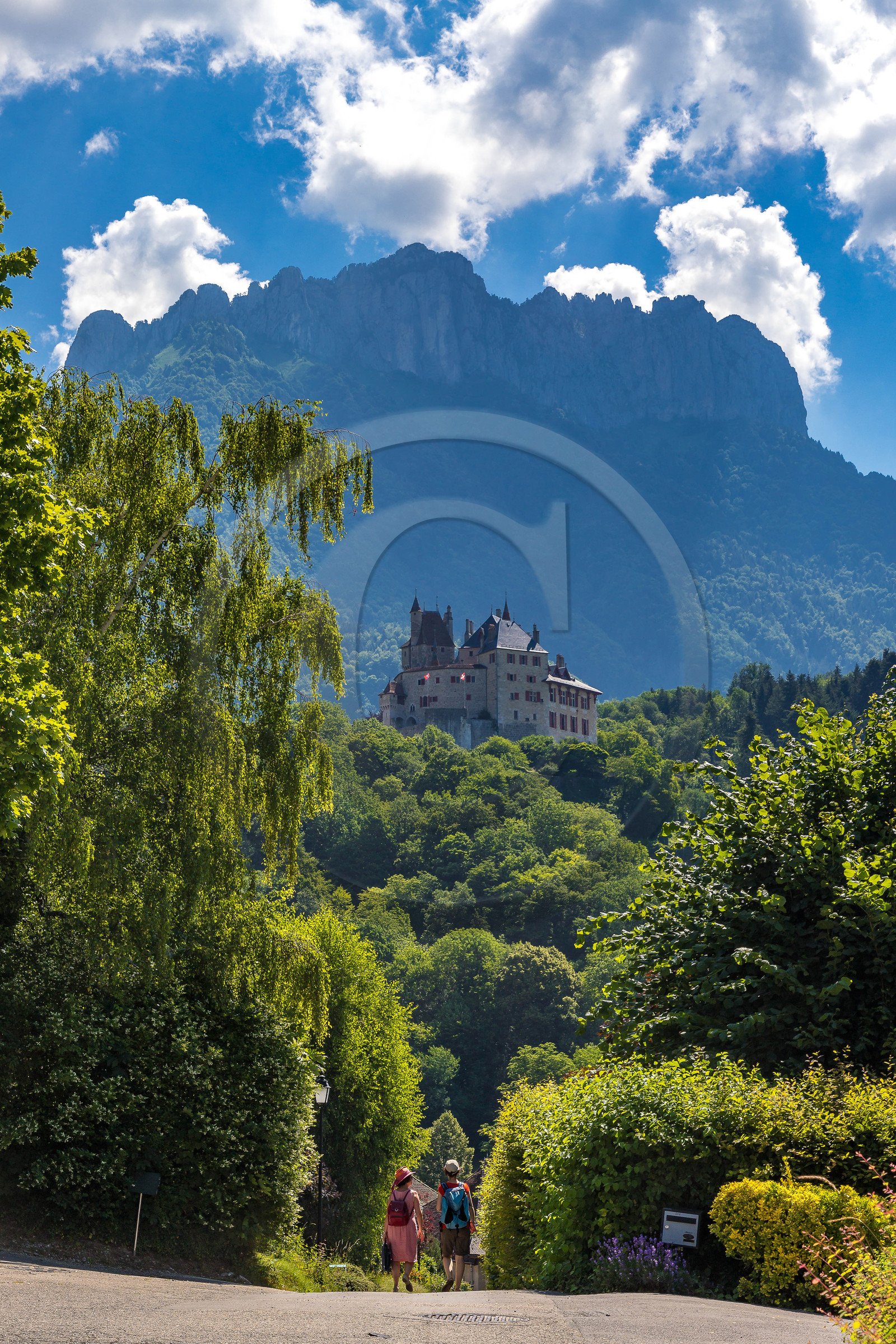 Description | Haute-Savoie (74), Lac d'Annecy, Menthon-Saint-Bernard, chemin des Crêtes, belvédère sur le Château de Menthon |