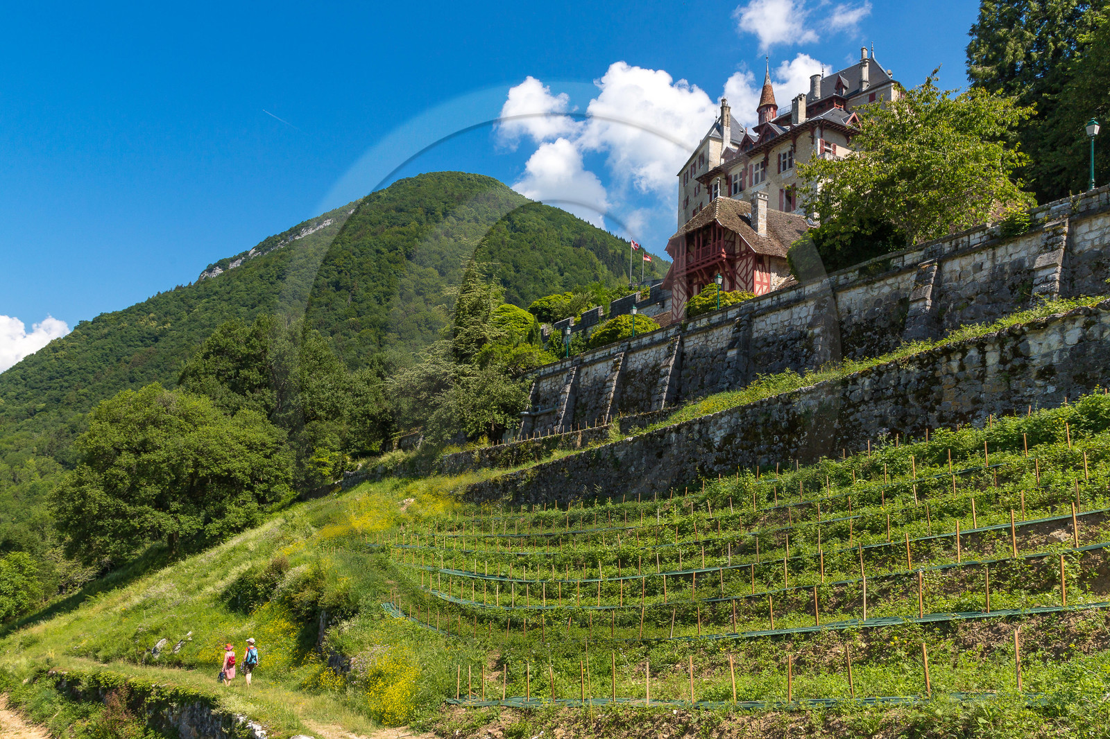 Description | Haute-Savoie (74), Lac d'Annecy, Menthon-Saint-Bernard, Château de Menthon et les vignes |