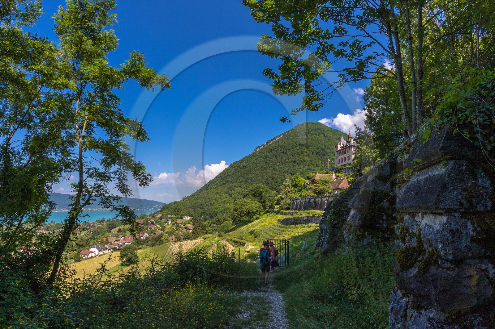 Description | Haute-Savoie (74), Lac d'Annecy, Menthon-Saint-Bernard, Château de Menthon et les vignes |