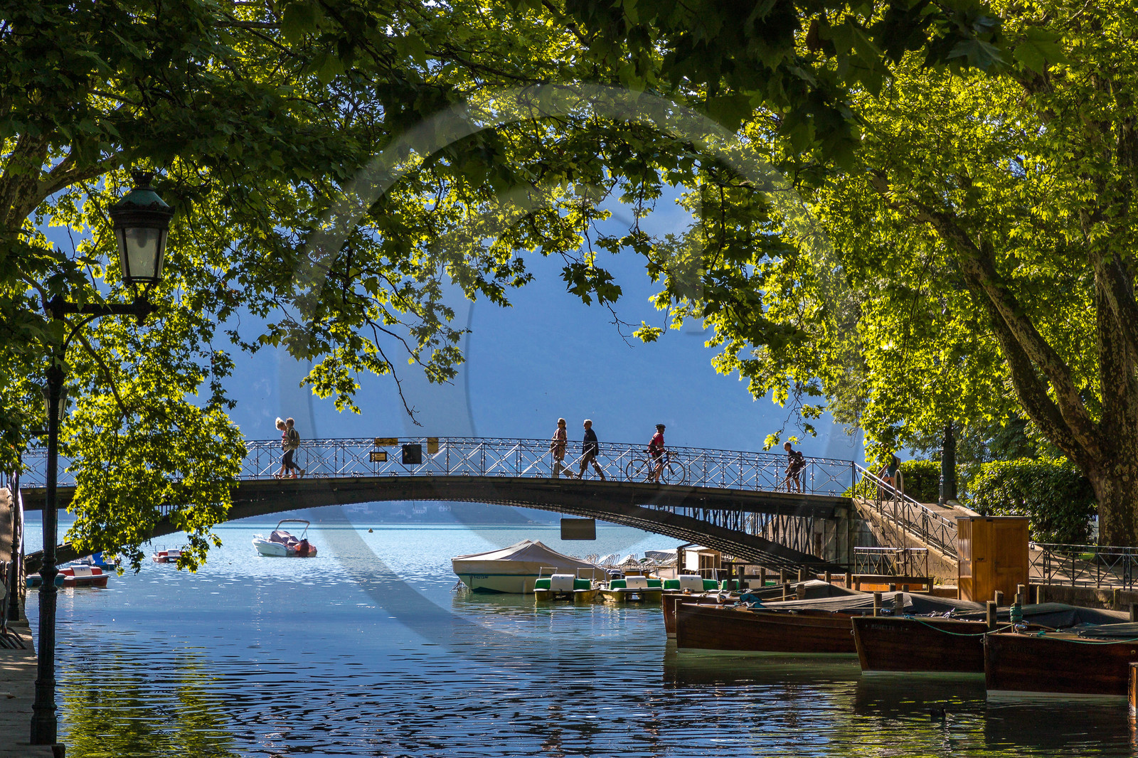 Description | Haute-Savoie (74), Annecy, promenade Jacquet, le Pont des Amours , Canal du Vassé |
