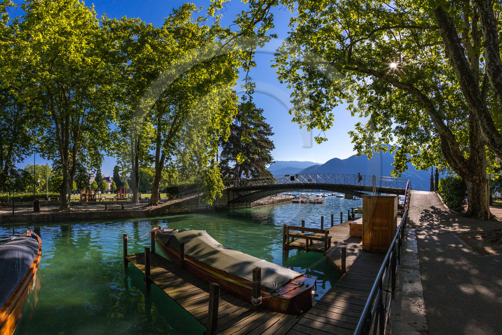 Description | Haute-Savoie (74), Annecy, promenade Jacquet, le Pont des Amours , Canal du Vassé |