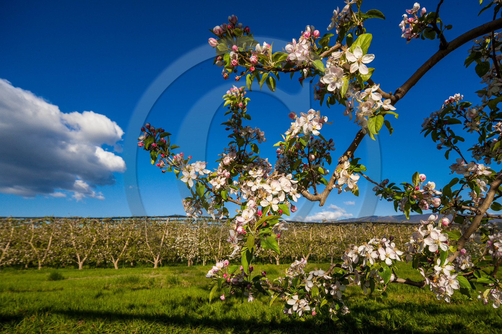 Description | Hautes Alpes (05), the Durance valley, orchard in blossom, apple producer |