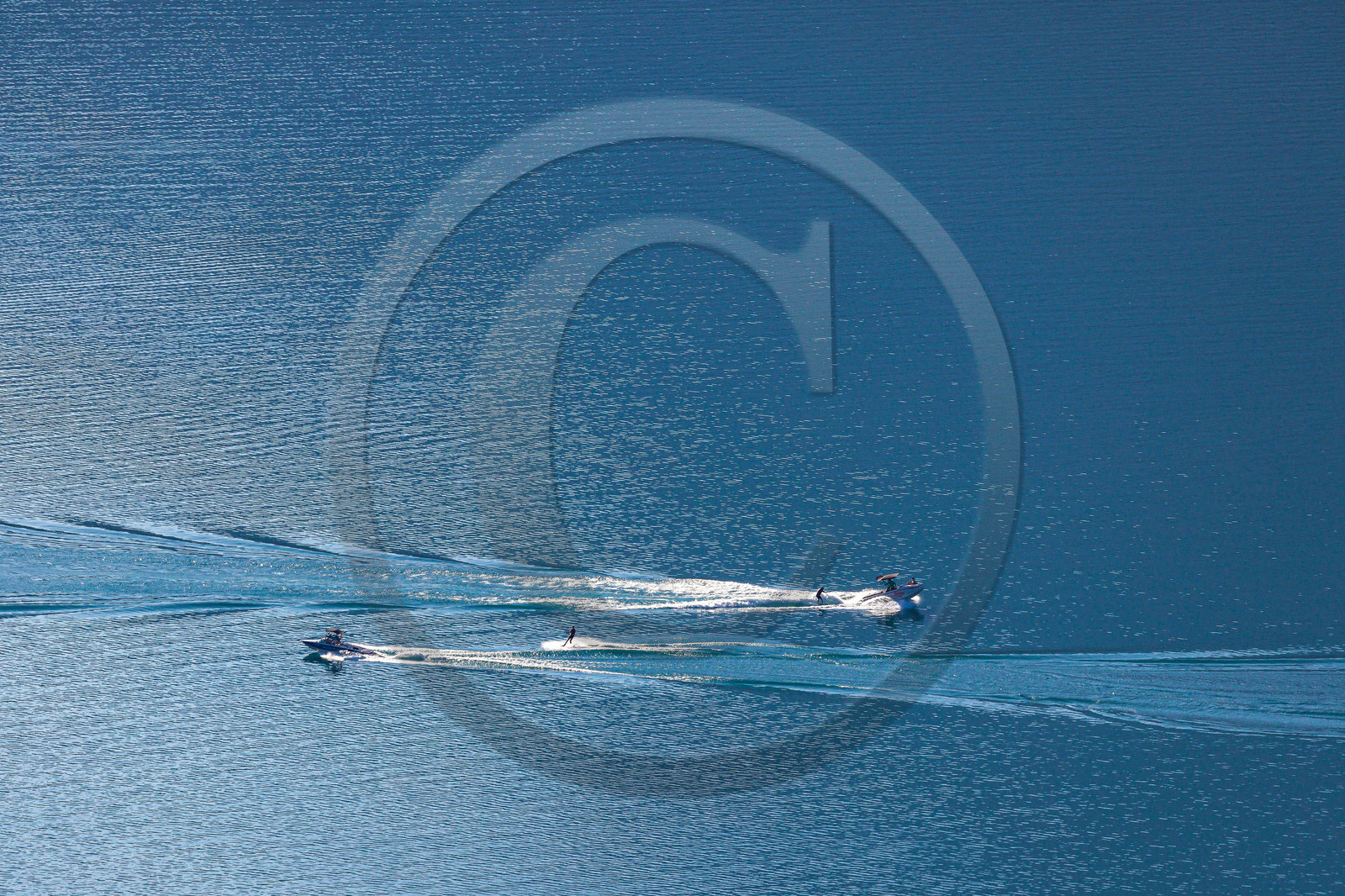 Description | Hautes-Alpes (05), Chorges, lac de Serre-Ponçon, Baie Saint-Michel, activité nautique, Nautic B, Surf Foil |