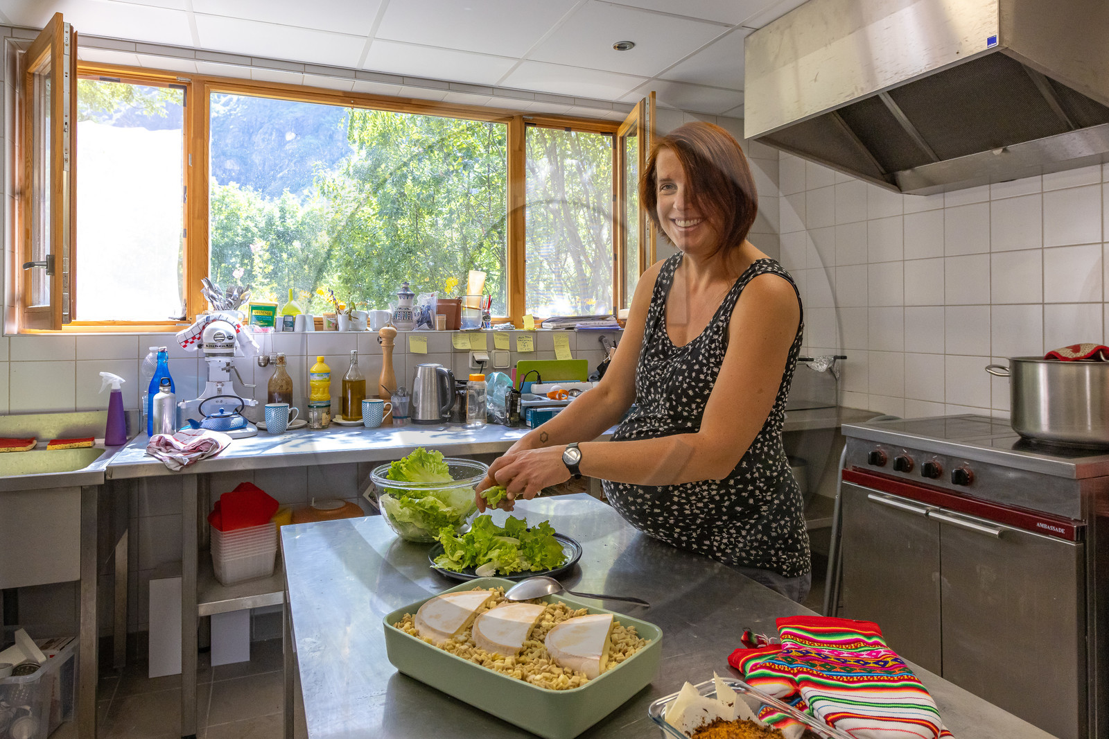 Description | Isère (38), Valbonnais, commune de Valjouffrey, Parc national des Ecrins, Vallée de la Bonne, Le Désert en Valjouffrey, Gîte d'étape Les Arias, Fanny |