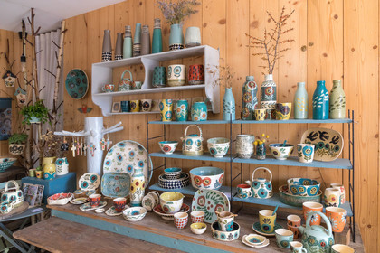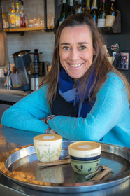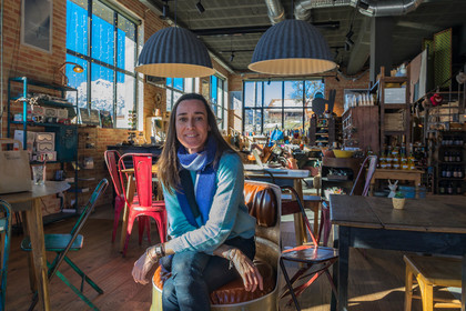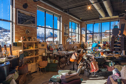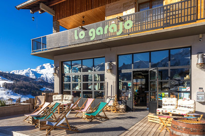 Haute-Savoie, massif des Aravis, Manigod, Lo Garâjo, café-concept d’altitude avec un espace lounge et salon de thé, une cave à vins, un bar à jus et bières artisanales, une épicerie fine, une boutique d’objets insolites, une librairie et un coin céramique.