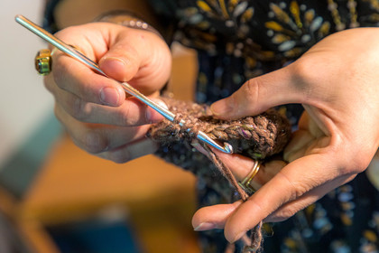 Haute-Savoie, massif des Aravis, Manigod, créations de bonnets et bijoux, Sarah Avettand créatrice de la marque Myne