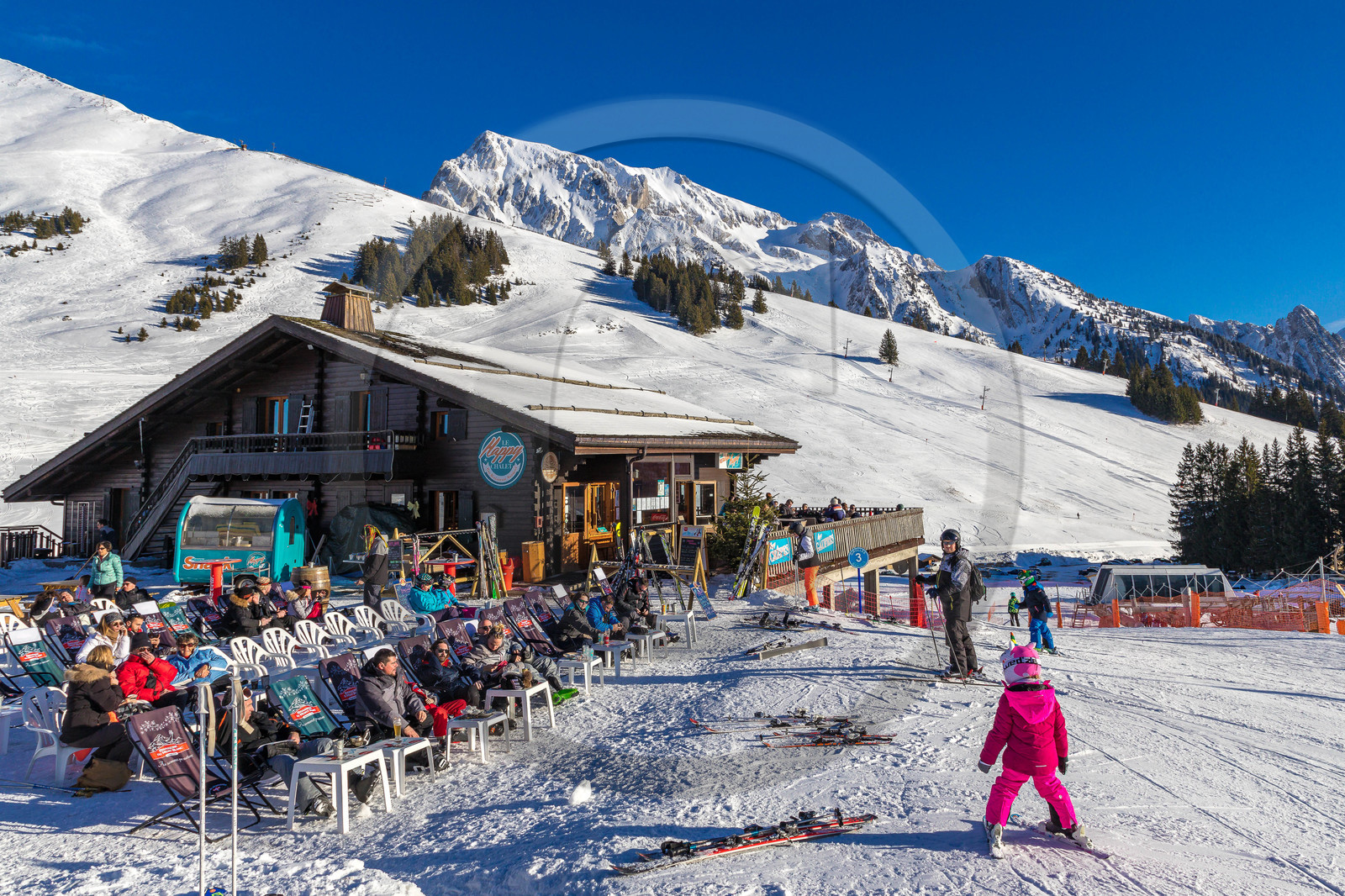 Description | Haute-Savoie, massif des Aravis, Manigod, col de Merdassier, terrasse de restaurant |