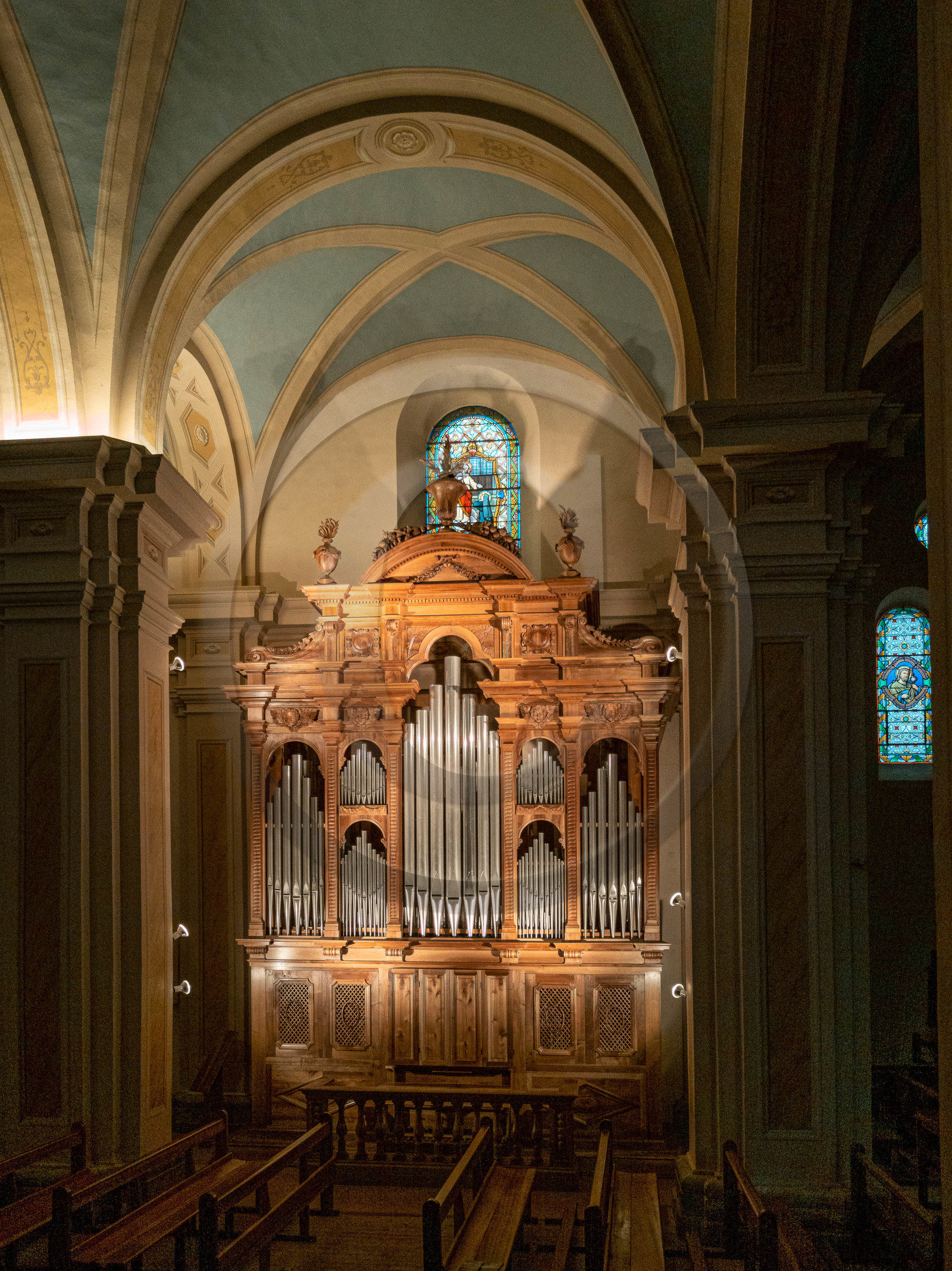 Description | Haute-Savoie, massif des Aravis, Manigod, Eglise Saint-Pierre et son orgue à tuyaux orné d'un buffet en noyer |