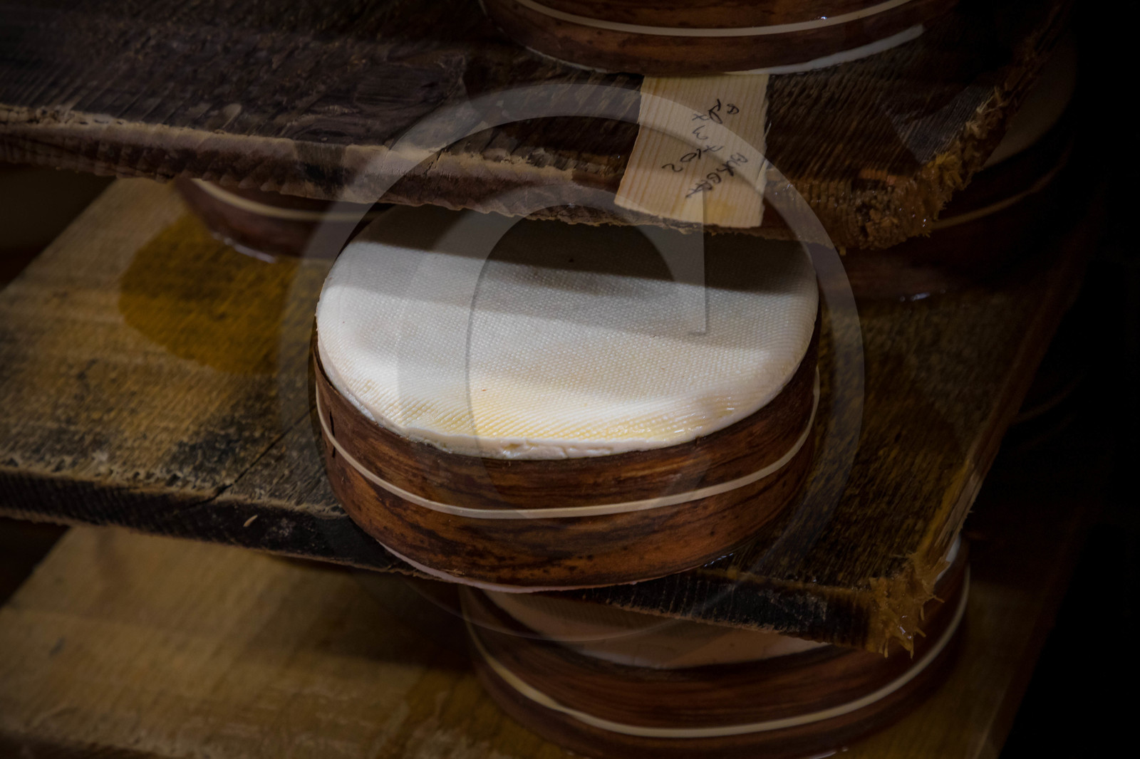 Description | Haute-Savoie, massif des Aravis, Manigod, Caves d'affinages Paccard, maître affineur de fromages fermiers de Savoie. Affinage de reblochon fermier, tomme, beaufort, abondance, chevrotin |