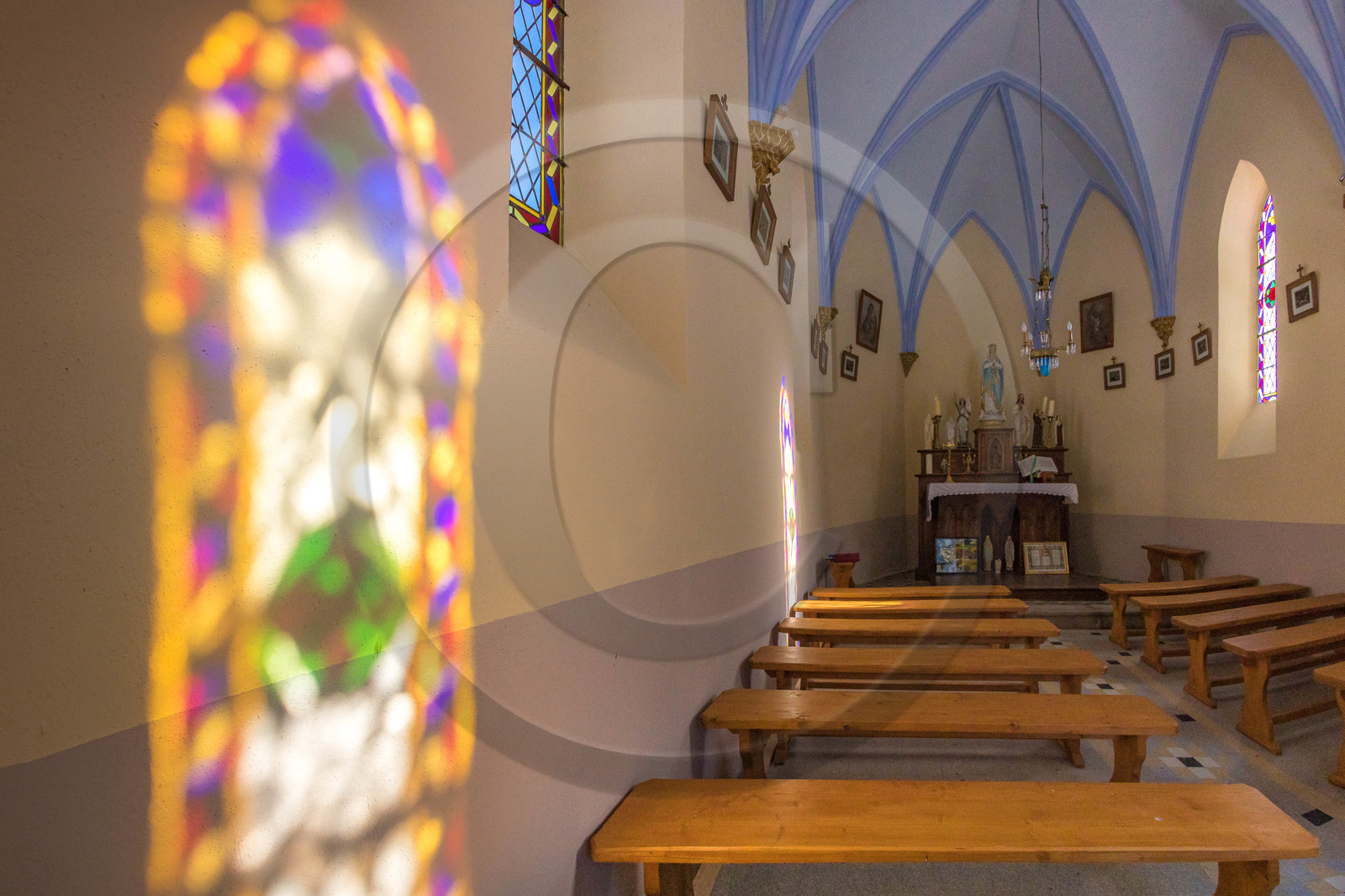 Description | Haute-Savoie, massif des Aravis, Manigod, vallée du Fier, La Charmette, chapelle de la Charmette, Notre-Dame des Neiges |