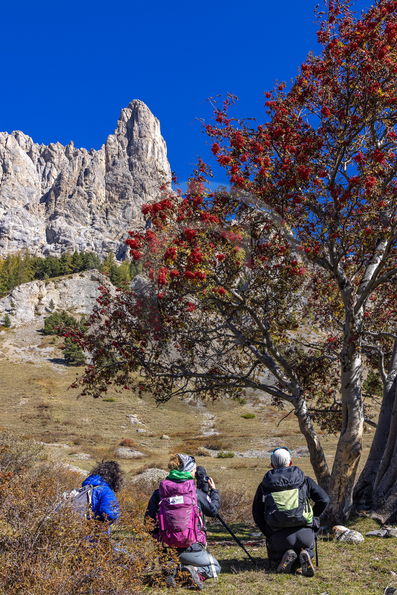 | Description | Hautes-Alpes (05), Parc national des Ecrins, Vallée de la Guisanne, Serre-Chevalier, Bureau Montagne Visa Trekking, randonnée pédestre avec Marjolaine Flammier, accompagnatrice en moyenne montagne, sortie découverte bouquetin Esprit Parc national |