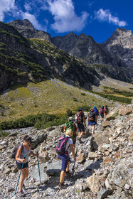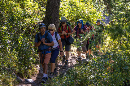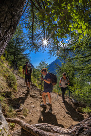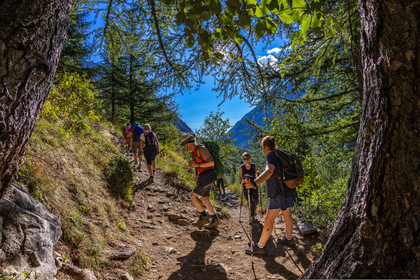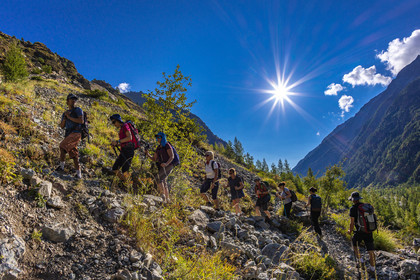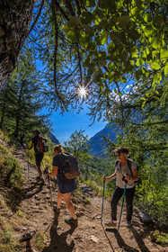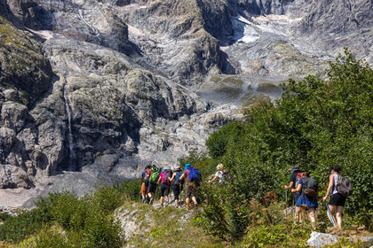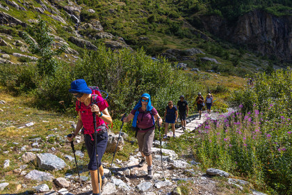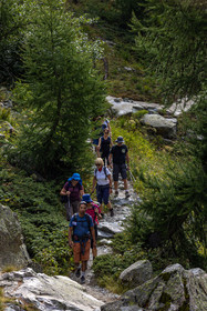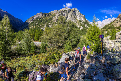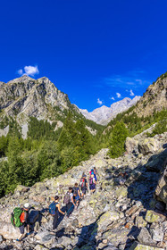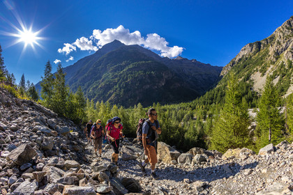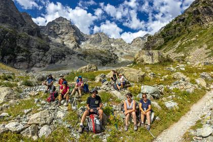 Hautes-Alpes (05), Parc national des Ecrins, Pays des Ecrins, Vallouise-Pelvoux, vallon des Bans, Allibert Trekking, randonnée pédestre avec Nirmal, accompagnateur en moyenne montagne, montée vers le refuge des Bans, Entre les Aigues // Hautes-Alpes (05), Ecrins National Park, Pays des Ecrins, Vallouise-Pelvoux, Vallon des Bans, Allibert Trekking, hiking with Nirmal, mountain guide, trekking to the refuge des Bancs
