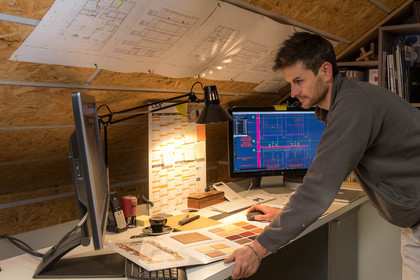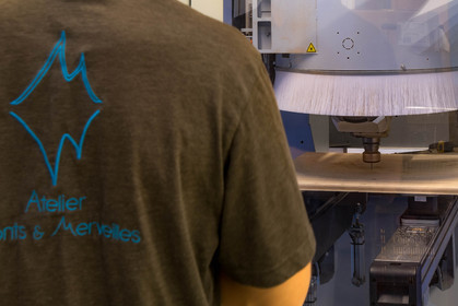 Hautes-Alpes (05), Les Vigneaux, atelier Monts & Merveilles, Atelier d'ébénisterie. Design et création de mobilier, Agencement intérieur, design mobilier, escalier, cuisine, Clément Goudet compagnon Menuisier Ebéniste et Maxime Cuvelot responsable d'atelier // Hautes-Alpes (05), atelier Monts & Merveilles, Interior layout, design furniture, stairs, kitchen, Clément Goudet