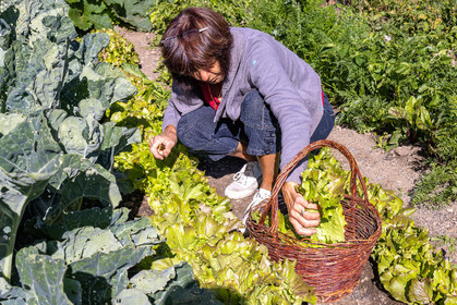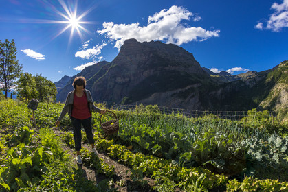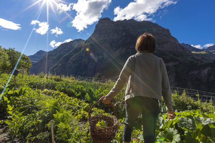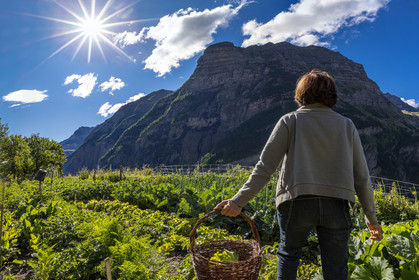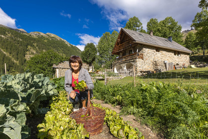 Hautes-Alpes (05), vallée de la Byaisse, Fressinières, Parc national des Ecrins, Dormillouse, L'Ecrin de Violette, Chambres et table d'hôtes, Martine Maretto et le jardin potager // Hautes-Alpes (05), Byaisse Valley, Fressinières, Ecrins National Park,village of Dormillouse, L'Ecrin de Violette, L'Ecrin de Violette, Bed and Breakfast