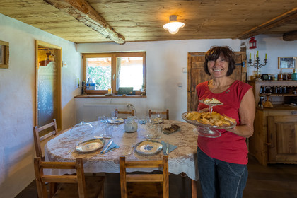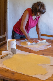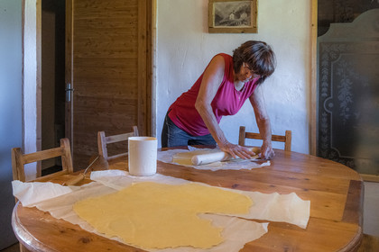 Hautes-Alpes (05), vallée de la Byaisse, Fressinières, Parc national des Ecrins, Dormillouse, L'Ecrin de Violette, Chambres et table d'hôtes, Martine Maretto, fabrication des Tourtes de Dormillouse, une spécialité culinaire locale // Hautes-Alpes (05), Byaisse Valley, Fressinières, Ecrins National Park,village of Dormillouse, L'Ecrin de Violette, L'Ecrin de Violette, Bed and Breakfast